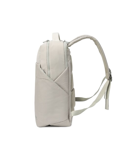 Найбільший рюкзак в асортименті колекції на кожен день, виготовлений з переробленої тканини в поєднанні з еко-шкірою. Оснащений двома основними відділими на блискавці, де можна розмістити ноутбук 15.6", планшет та документи формату А4, також присутня кишеня на блискавці з RFID-захистом. Блискавка на відділі з ноутбуком, передбачає можливість розмістити навісний замок для гарантування додаткової безпеки цінних речей. Бокові кишені для пляшки, парасольки та дрібних речей, також дві кишені на передній частині виробу для речей першої необхідності. На задній частині виробу м'яка спинка та плечові ремені, кишеня для зберігання дощовика, також планка для фіксації на телескопічну ручку валізи, що безумовно полегшує пересування під час подорожей.