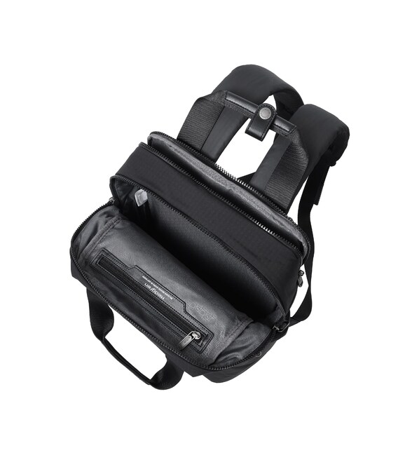 Найбільший рюкзак в асортименті колекції на кожен день, виготовлений з переробленої тканини в поєднанні з еко-шкірою. Оснащений двома основними відділими на блискавці, де можна розмістити ноутбук 15.6", планшет та документи формату А4, також присутня кишеня на блискавці з RFID-захистом. Блискавка на відділі з ноутбуком, передбачає можливість розмістити навісний замок для гарантування додаткової безпеки цінних речей. Бокові кишені для пляшки, парасольки та дрібних речей, також дві кишені на передній частині виробу для речей першої необхідності. На задній частині виробу м'яка спинка та плечові ремені, кишеня для зберігання дощовика, також планка для фіксації на телескопічну ручку валізи, що безумовно полегшує пересування під час подорожей.