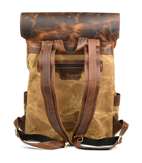 Рюкзак для ноутбука із канвас та крейзі хорс RYw-9001-4lx бренду TARWA, від українського бренду TARWA. Зручна та стильна модель для роботи або навчання. Вміщує ноутбук, документи та багато іншого. Для поїздок та подорожей теж буде корисним цей рюкзак.