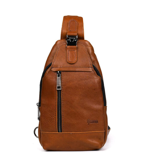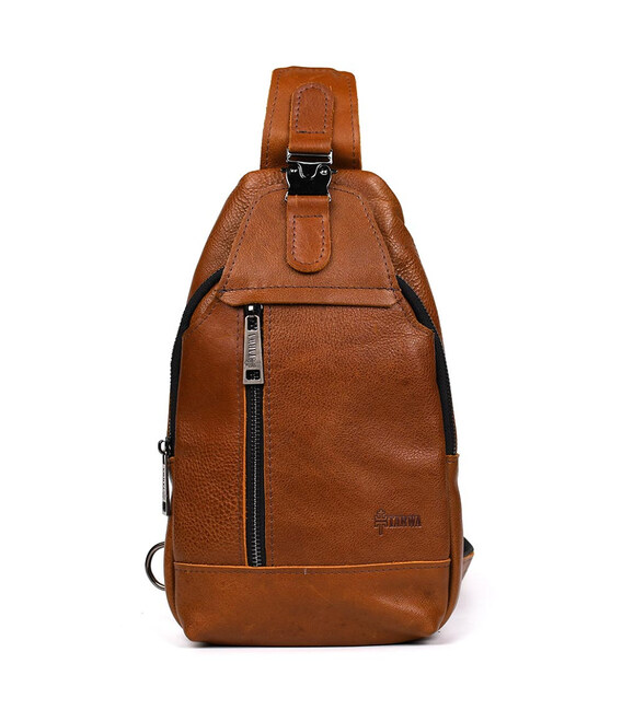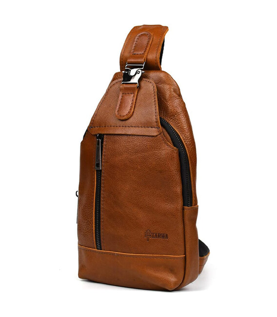 Чоловічий рюкзак слінг шкіряний коньяк TARWA GB-0116-3md