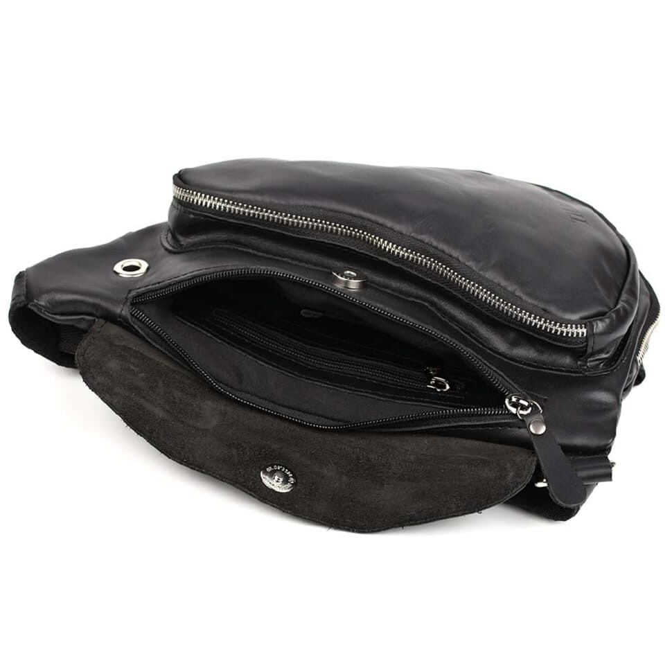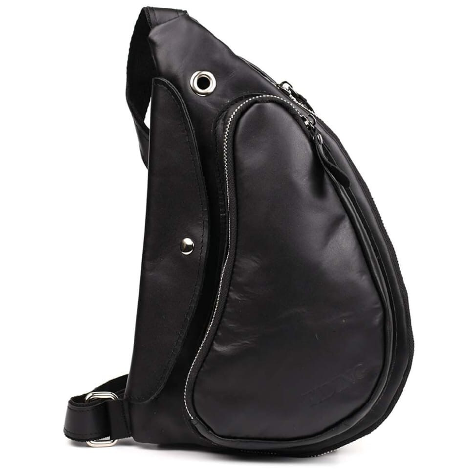 Шкіряний рюкзак слінг TIDING tid3026GA чорна Наппа. Трендовий рюкзак слінг на одне плече зі шкіри наппа з функціональними кишенями та відділенням.