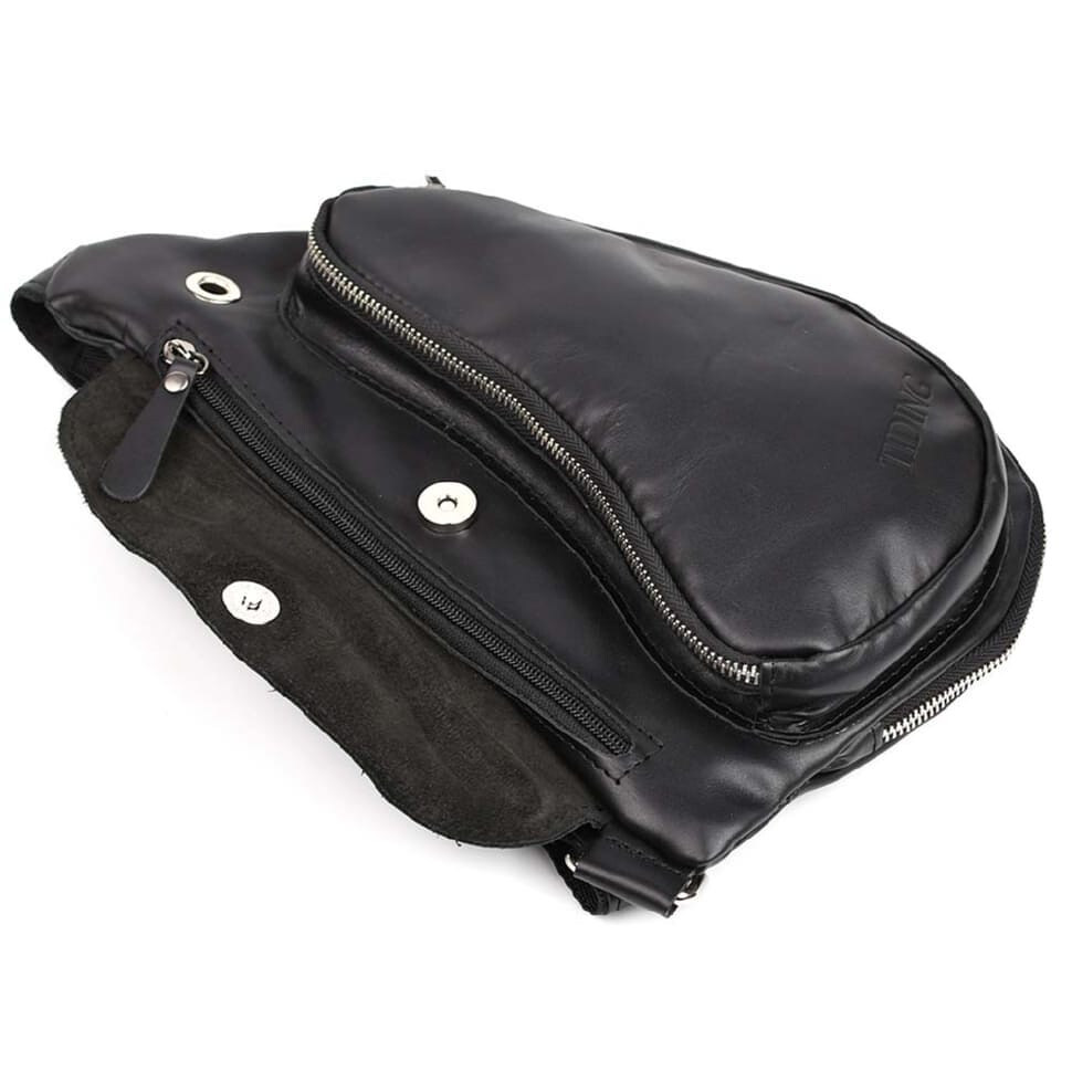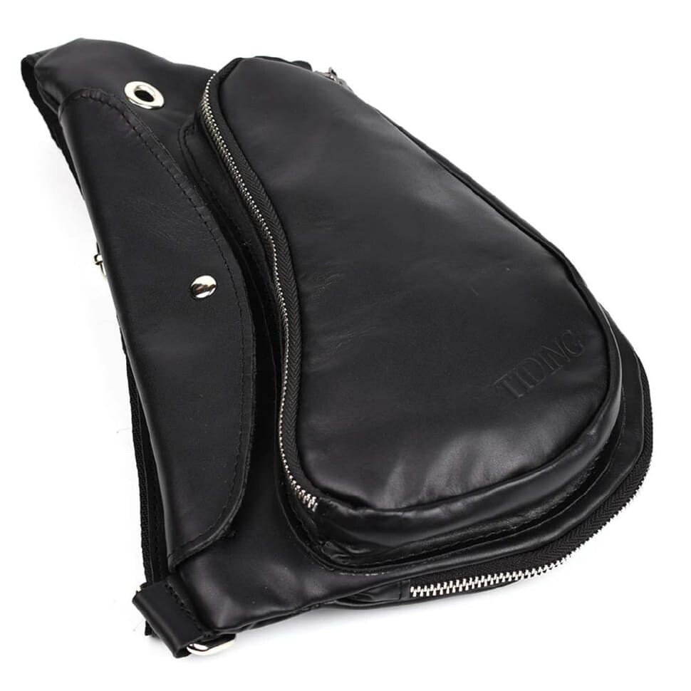 Шкіряний рюкзак слінг TIDING tid3026GA чорна наппа картинка, зображення, фото
