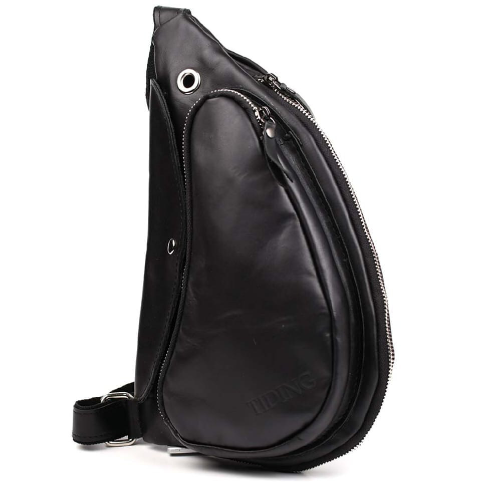 Шкіряний рюкзак слінг TIDING tid3026GA чорна наппа