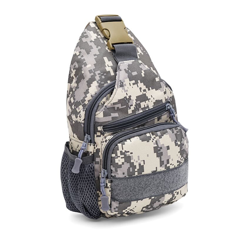 Сумка-слінг виготовлена з міцного текстилю. Має 1 відділення на блискавці. Усередині 1 кишенька на блискавці. Зовні - 3 кишені на блискавці та бічна кишеня. Підкладка – текстиль. Плечовий ремінь регулюється по довжині, можна чіпляти ліворуч або праворуч.
