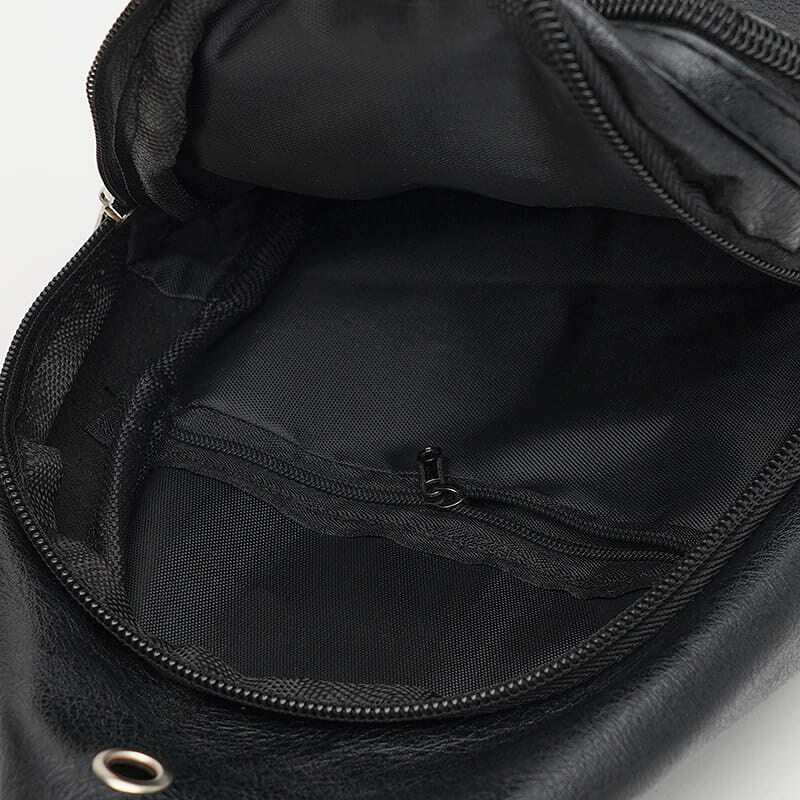 Рюкзак через плече закривається на блискавку, має 1 основне відділення, 2 кишені з лицьового боку та 1 кишеню всередині. Підкладка текстиль, незнімний плечовий ремінь регулюється по довжині.