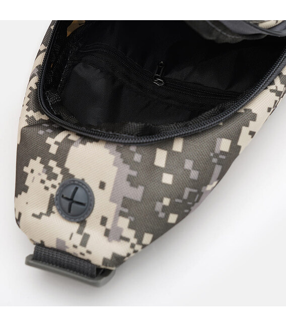 Текстильний рюкзак через плече закривається на блискавку, має 1 основне відділення, 2 кишені з лицьового боку та 1 кишеню всередині. Підкладка текстиль, незнімний плечовий ремінь регулюється по довжині.