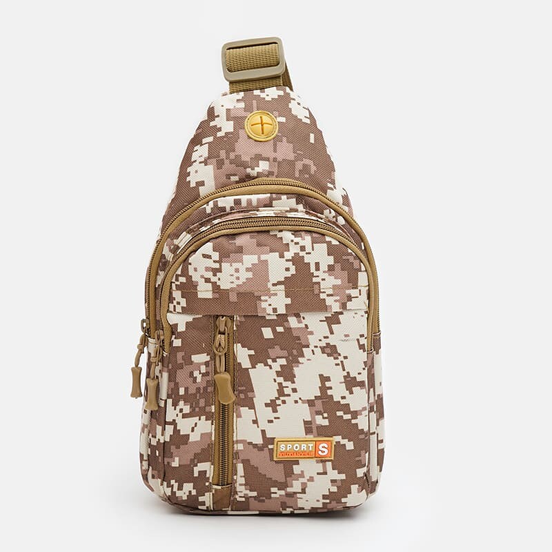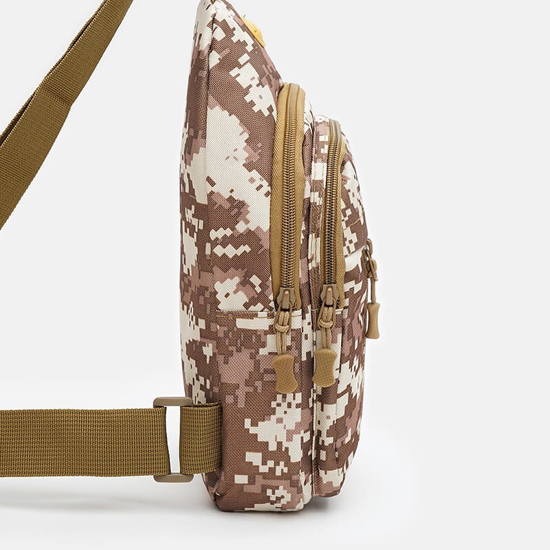 Текстильний рюкзак через плече закривається на блискавку, має 1 основне відділення, 2 кишені з лицьового боку та 1 кишеню всередині. Підкладка текстиль, незнімний плечовий ремінь регулюється по довжині.