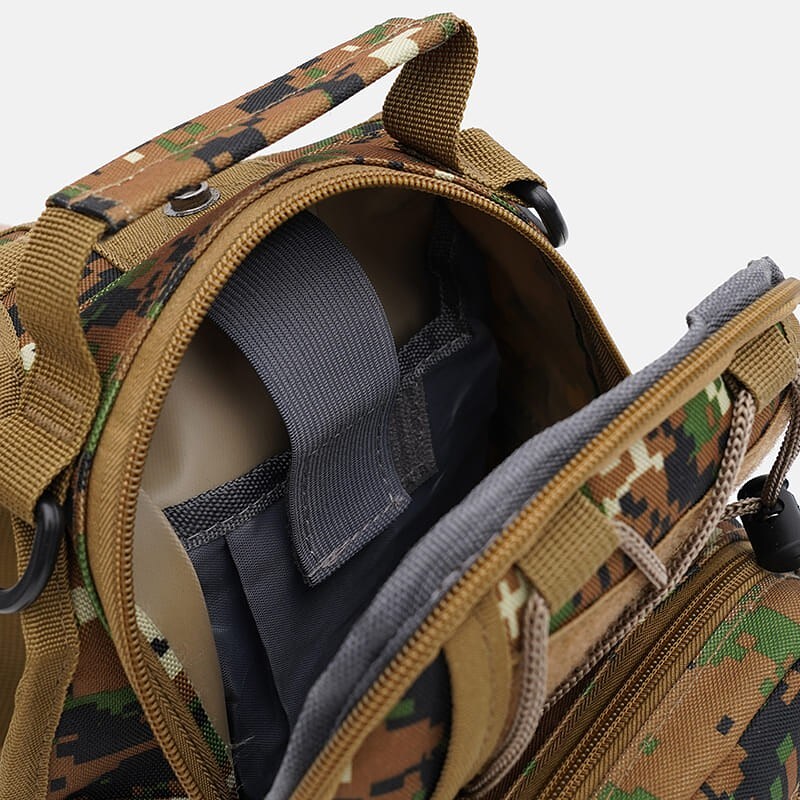 Чоловічий рюкзак закривається на блискавку, має 1 відділення, всередині 2 кишені для телефону та інших дрібниць, зовні 3 кишені. Текстиль підкладка. Плечовий ремінь регулюється по довжині, має кріплення зліва та праворуч.