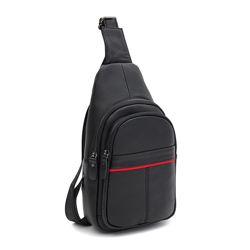 Чоловічий рюкзак виготовлений з натуральної шкіри. Закривається на блискавку. Має 1 основне відділення, всередині якого 2 кишені. З лицьового та тильного боку по 1 кишені. Текстиль підкладка. Ремінь регулюється за довжиною.