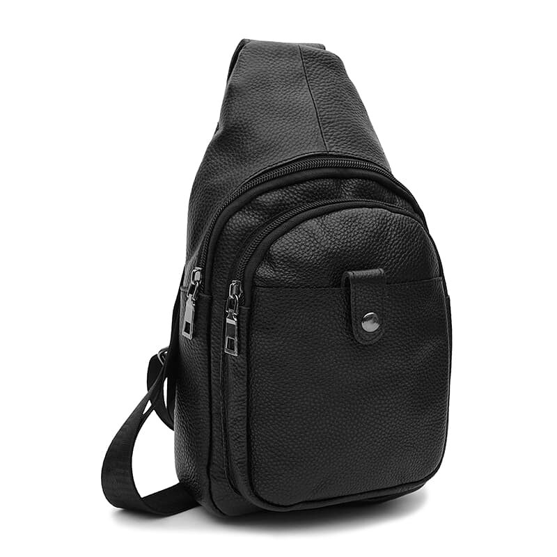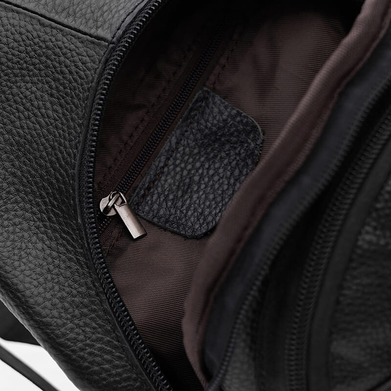 Чоловічий шкіряний рюкзак закривається на блискавку та клапан з магнітом. Має 2 відділення та 1 кишеню всередині. З лицьового та зовнішнього боку - по 1 кишені. Підкладка - текстиль, ремінь незнімний регулюється по довжині.