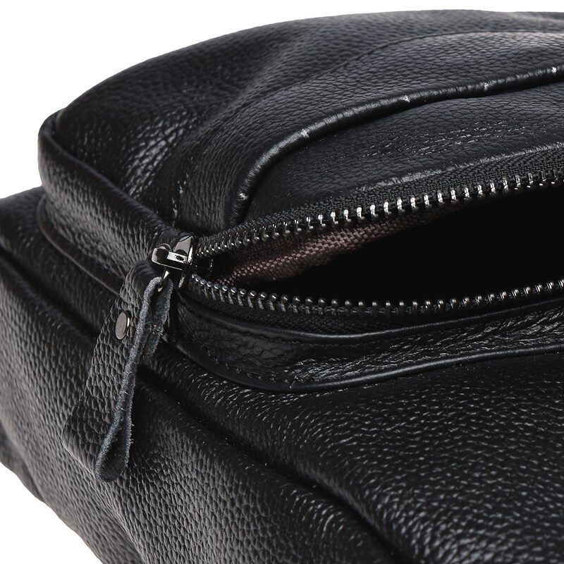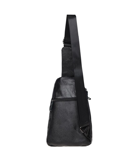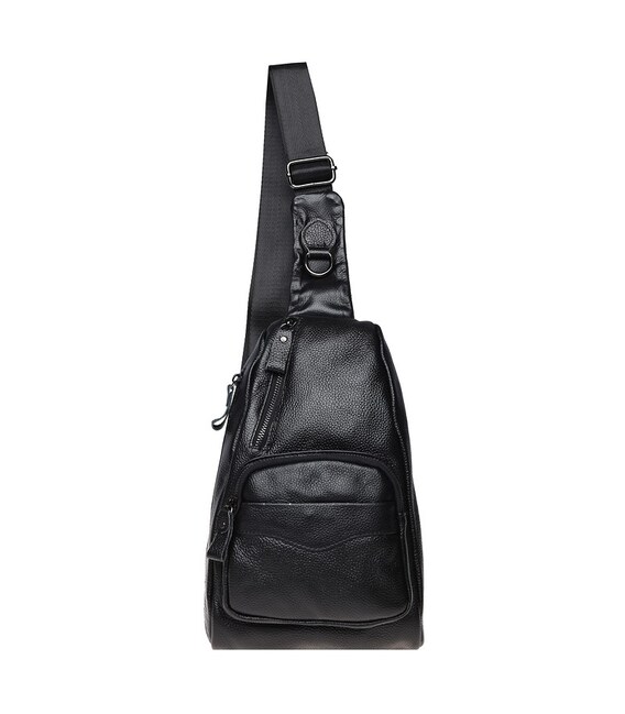 Шкіряна сумка -слінг- відмінний аксесуар для чоловіка на кожен день. Рюкзак-легкий, зручний, має багато кишень. Основне відділення з бічної частини закривається на блискавку. З лицьового боку-1 накладна кишеня і 1 кишеня на блискавці, з зовнішньої сторони-1 кишеня на блискавці. Подкладкка- текстиль. Фурнітура- металева. Незнімний ремінь регулюється по довжині.