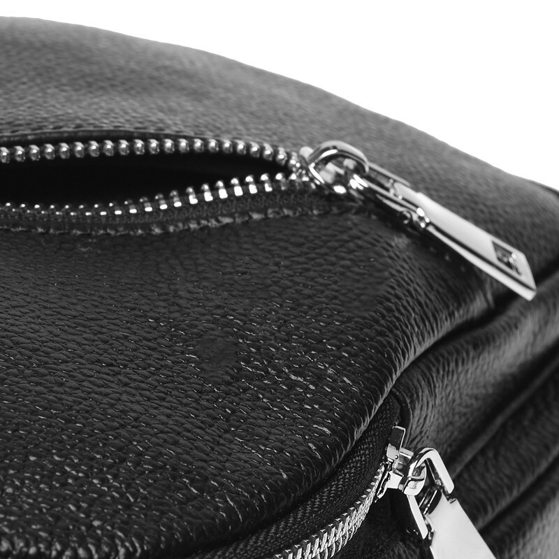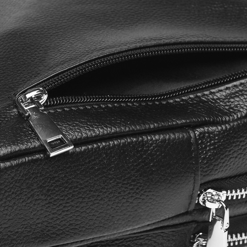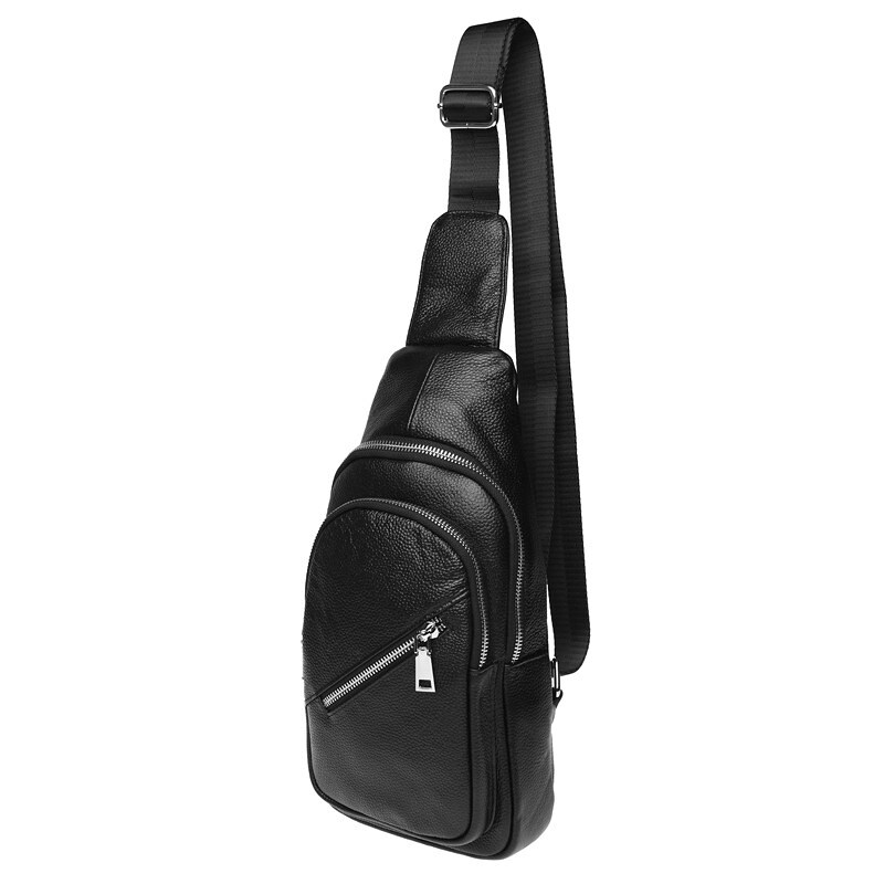 Чоловічий шкіряний рюкзак на плече-відмінне придбання для вирішення щоденних справ. Рюкзак виконаний з натуральної шкіри, має одне відділення на блискавці, всередині 2 кишені для телефону і дрібниць. З лицьового боку-2 кишені на блискавці, з тильного боку-1 кишеня на блискавці. Підкладка текстиль. Фурнітура- метал. Плечовий ремінь регулюється по довжині.