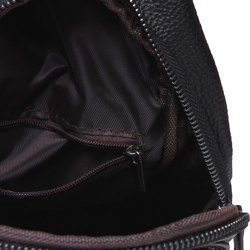 Стильний рюкзак середнього розміру зі шкіри. Має 1 основне відділення на блискавці. Усередині 2 кишені для дрібниць і телефону. З лицьового боку-2 кишені на блискавці. З тильного боку -1 містка кишеня. Підкладка текстиль. Довжина плечового ременя регулюються по довжині.