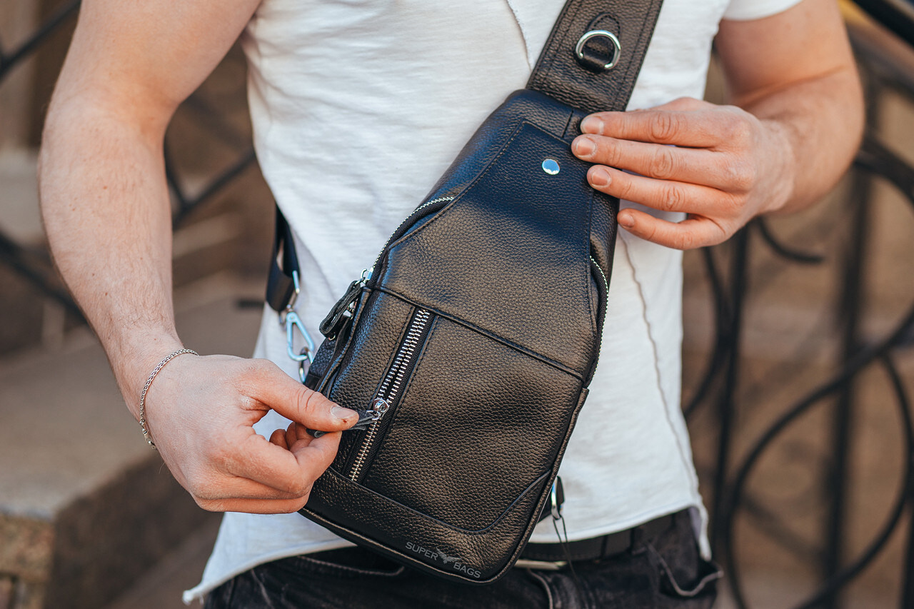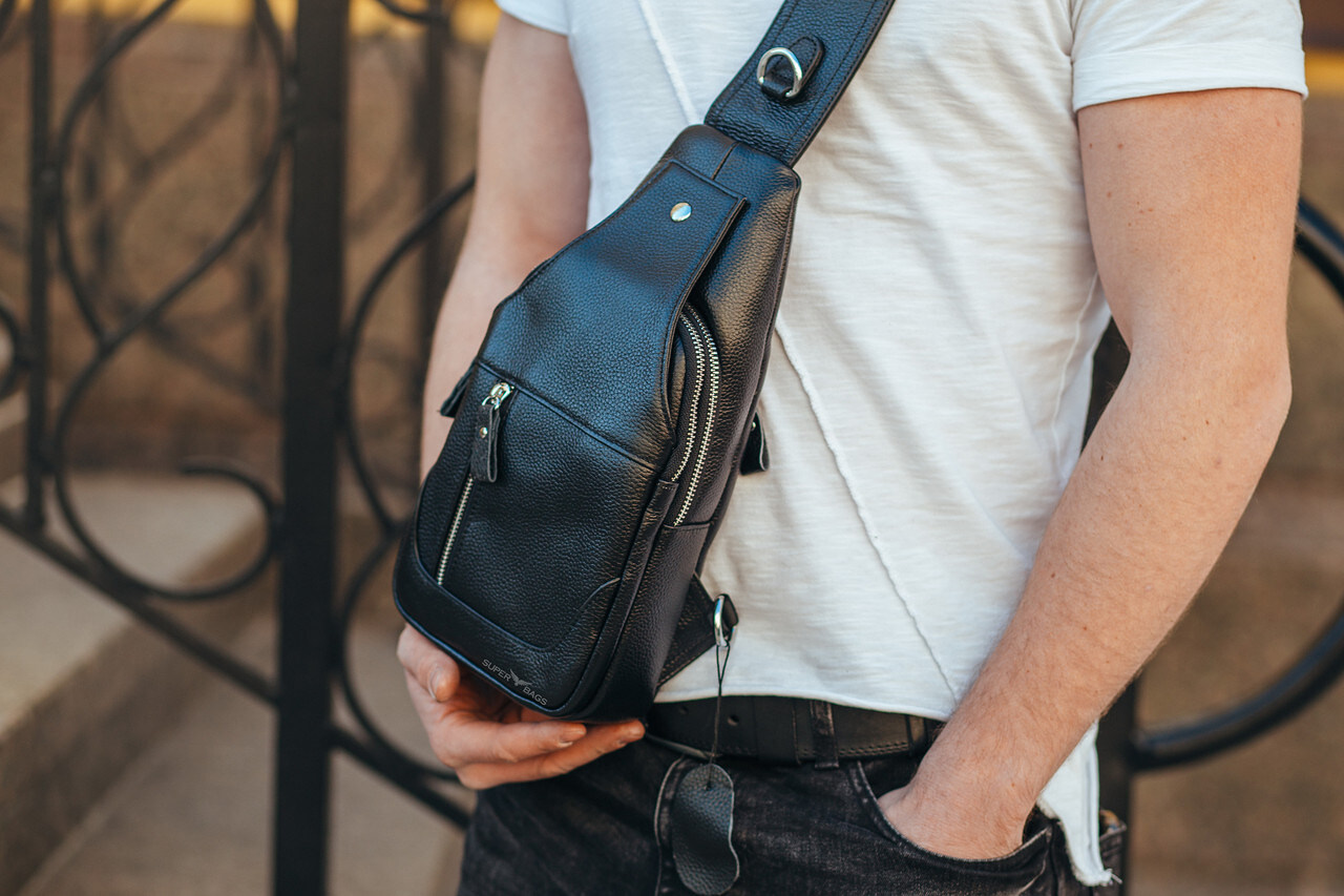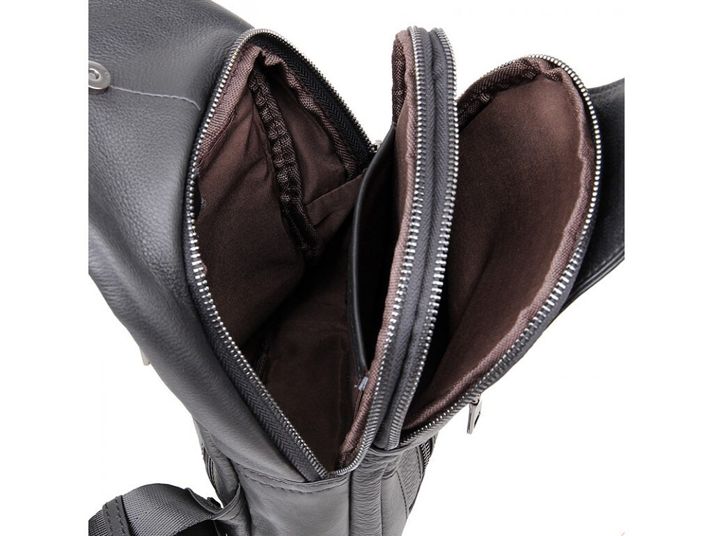 Шкіряний чорний чоловічий слінг рюкзак на одне плече TIDING BAG A25F-617-1A