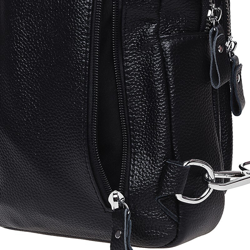 Рюкзак має 1 відділення на блискавці. Усередині 2 кишені для дрібниць. З лицьового боку-2 кишені на блискавці, з тильної - 1 вертикальна кишеню на блискавки. Підкладка текстиль. Колір фурнітури срібло. Фурнітура- метал. Незнімний плечовий ремінь регулюється по довжині.