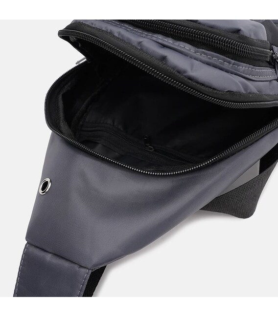 Чоловічий рюкзак через плече виконаний із якісного текстилю. Має 1 відділення на блискавці, всередині 1 кишеню для телефону та дрібниць. Зовні - 3 практичні середні кишені. Підкладка-текстиль. Плечовий ремінь регулюється по довжині.