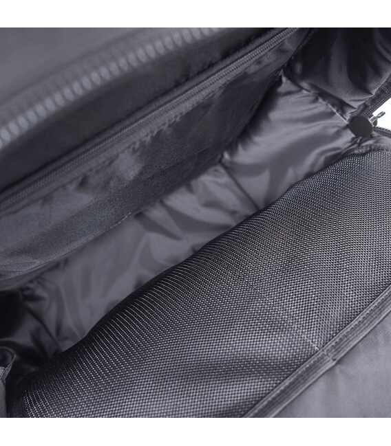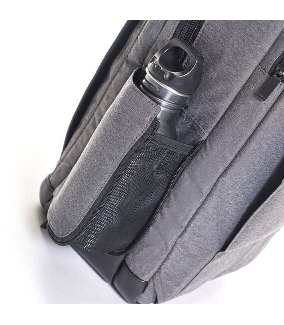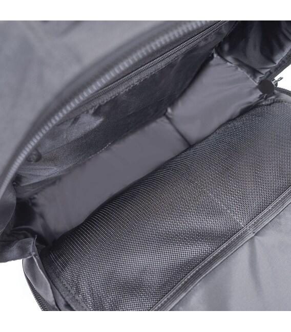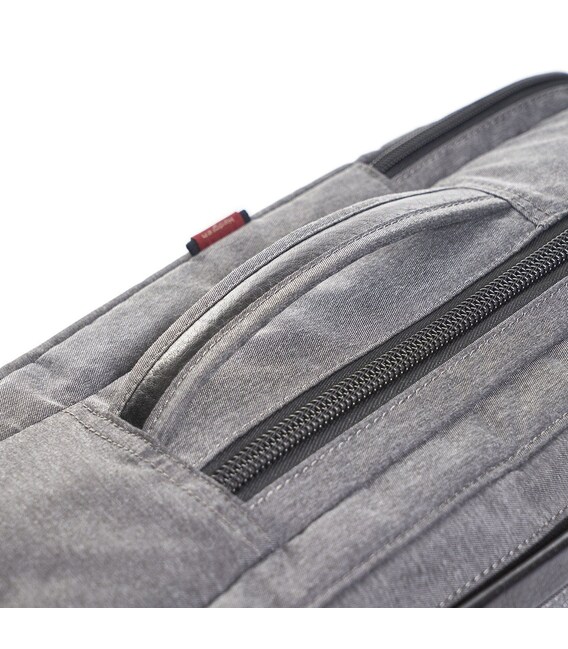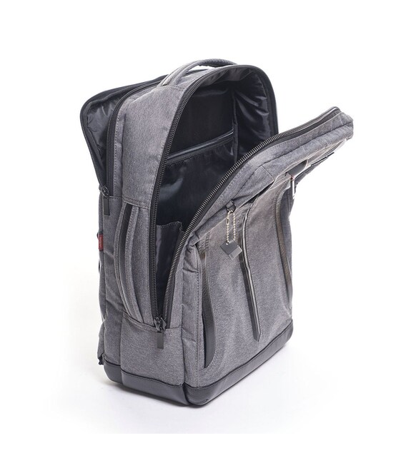 У рюкзака есть два больших отделения на молнии. На фасадной части расположен глубокий карман на молнии с мини-офисом внутри, карманом на молнии и тремя дополнительными вертикальными карманами. Также на боковой поверхности есть небольшой карман для необходимых мелочей.
