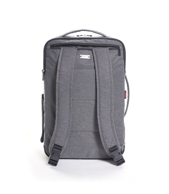Рюкзак выполнен в оригинальной прямоугольной форме. Он оснащен плечевыми ремнями с возможностью регулировки длины, подъемной ручкой сверху и на боковой поверхности. Плечевые ремни можно спрятать в текстильный карман на задней поверхности, также есть текстильная планка для крепления рюкзака на телескопической ручке чемодана. Размер и вес позволят Вам взять его на борт самолета, что несомненно подарит дополнительный комфорт во время поездки.