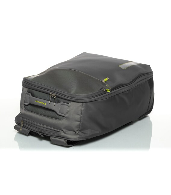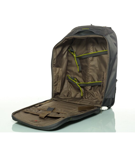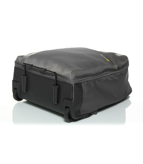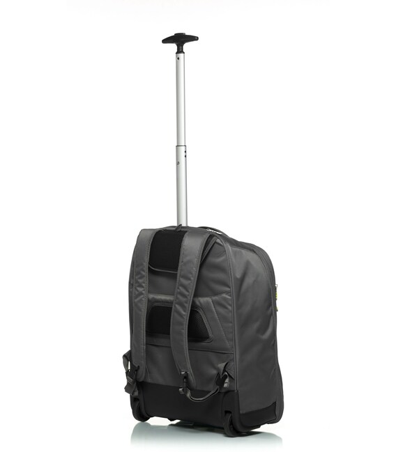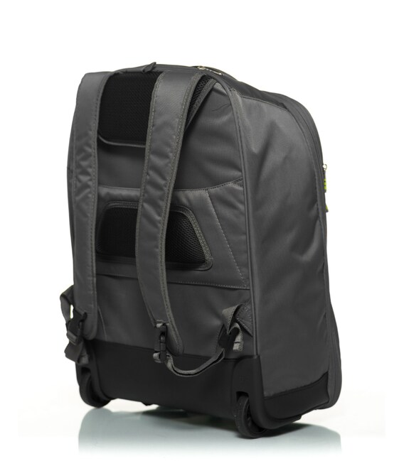 Рюкзак на колесах з серії Speed виготовлений з нейлону і поліестеру, що забезпечує вологостійкість. Плечові лямки легко регулюються по висоті. На верхній поверхні є м'яка ручка для зручності перенесення. Усередині основного відділення передбачені багажні ремені для фіксації речей. Також передбачено відділення для 15-дюймового ноутбука і кишеню для планшета. Є передня кишеня, яка закривається на блискавку. Рюкзак оснащений телескопічною ручкою і двома колесами.
