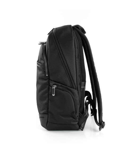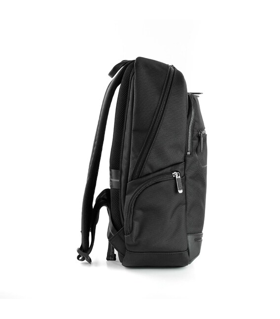 Чоловічий діловий рюкзак з колекції Wall Street виготовлений з міцного матеріалу - нейлону і ПВХ, що надає виробу довговічність у використанні. Рюкзак має два незалежних відділення на блискавках, дві фронтальні кишені, які закриваються на блискавки, і дві бічні кишені на блискавках. Є відсіки для ноутбука з діагоналлю 14" і планшета з діагоналлю 10", смартфона, а також пластикових карт, візиток, ручок і ін. Фронтальні кути вироби додатково захищені накладками. Внутрішня організація з УФ-друкованою графікою. На задній поверхні рюкзака передбачена текстильна планка для фіксації на телескопічну ручку валізи.