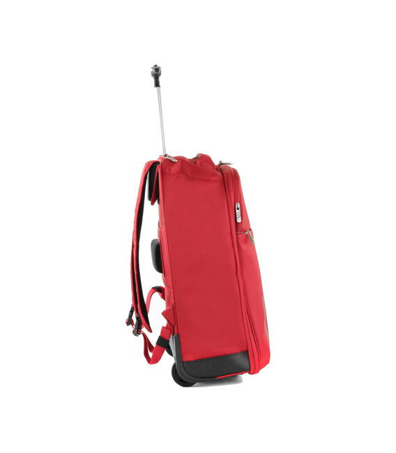 Рюкзак з серії Speed виготовлений з нейлону і поліестеру, що забезпечує вологостійкість. Плечові лямки легко регулюються по висоті. На верхній поверхні є м'яка ручка для зручності перенесення. Усередині основного відділення передбачені багажні ремені для фіксації речей. Також передбачено відділення для 15-дюймового ноутбука і кишеню для планшета. Є передня кишеня, яка закривається на блискавку. Рюкзак оснащений телескопічною ручкою і двома колесами.