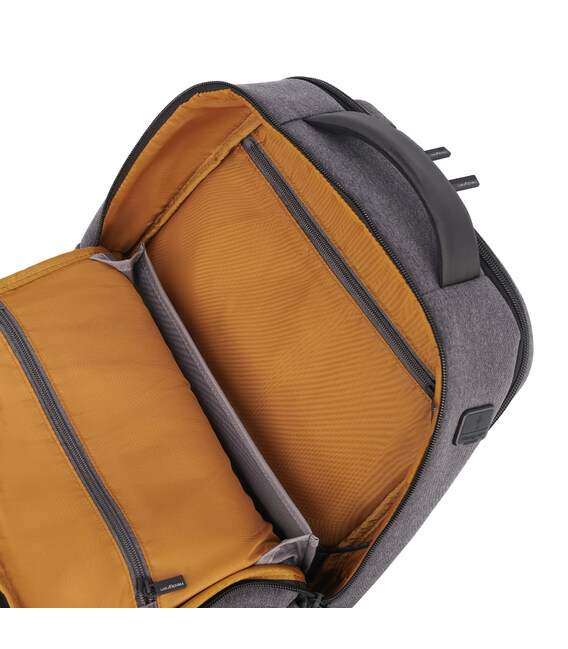 Представляємо Вашій увазі ділову колекцію Next для чоловіків. Основний матеріал 72% -nylon 28% -polyester плюс 100% polyester з водовідштовхувальним покриттям. Багатофункціональний рюкзак, ідеально, підійде динамічним чоловікам для не тривалого відрядження або щоденного використання. У першому відділенні розміщення дві внутрішні кишені для кращої організації речей і додаткова кишеня з RFID-захистом. Друге відділення оснащено глибокою кишенею і відділом для ноутбука 15.6" та планшета 10". Також містить три зовнішні кишені з міні-офісом , гачком для ключів і бічні кишені. На задній частині рюкзака розміщений розумний рукав, для телескопічної ручки і додаткова кишеня.