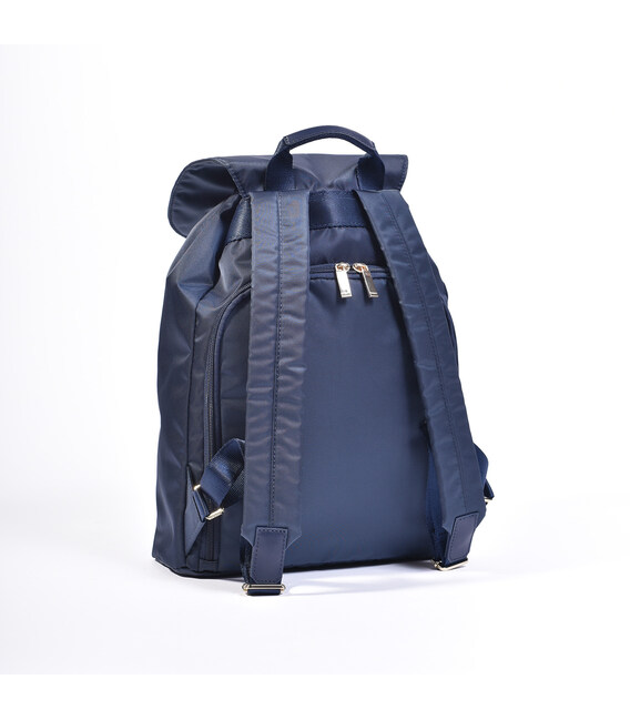 Універсальний рюкзак з клапаном оснащений містким основним відділенням, з унікальною застібкою з натуральної шкіри на металеву гудзик з магнітом або шнуром-затягуванням. Усередині кишеню для смартфона і додаткова внутрішня кишеня на блискавки. На задній частині розташований відділ на блискавці, являє собою додатковий спосіб відкриття рюкзака або зручний доступ до внутрішнього кишені. Зовнішня частина оснащена кишенею із золотистою блискавкою і фірмовим брелоком. Плечові ремені м'які і зручно регулюються, а комфорт перенесення додає додаткова верхня ручка зі шкіри.