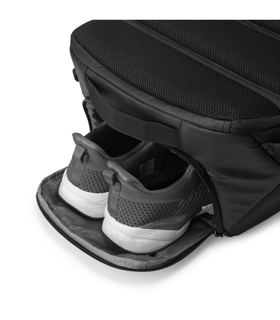 Представляємо Вашій увазі колекцію Commute для чоловіків. Основний матеріал 100% coated polyester з водовідштовхувальним покриттям. Рюкзак ідеально підходить для подорожей і відряджень. Оснащений містким відділенням з притискними ременями в якому є можливість розмістити особисті речі, відділ для ноутбуку 15.6" і документи формату А4, також, сітковий відділ для Power Bank з USB-портом. У нижній частині рюкзака розміщена спеціальна кишеня для взуття. Зверху додаткова кишеня з міні-офісом. Також, є місткі бічні кишені для дрібниць. На плечових лямках розташована грудна стяжка, яку можна регулювати по висоті, що дозволить лямкам бути зафіксованими і не перешкоджати Вашим рухам. Рюкзак тримає форму, має якісну фурнітуру і стильний дизайн.