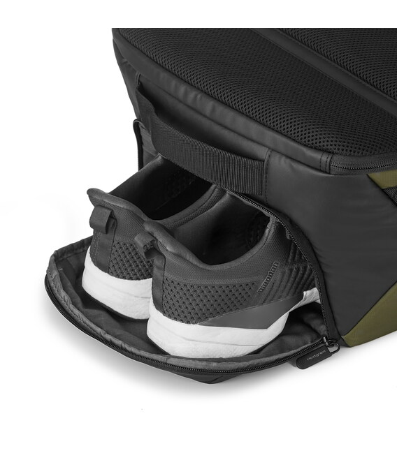 Представляємо Вашій увазі колекцію Commute для чоловіків. Основний матеріал 100% coated polyester з водовідштовхувальним покриттям. Рюкзак ідеально підходить для подорожей і відряджень. Оснащений містким відділенням з притискними ременями в якому є можливість розмістити особисті речі, відділ для ноутбуку 15.6" і документи формату А4, також, сітковий відділ для Power Bank з USB-портом. У нижній частині рюкзака розміщена спеціальна кишеня для взуття. Зверху додаткова кишеня з міні-офісом. Також, є місткі бічні кишені для дрібниць. На плечових лямках розташована грудна стяжка, яку можна регулювати по висоті, що дозволить лямкам бути зафіксованими і не перешкоджати Вашим рухам. Рюкзак тримає форму, має якісну фурнітуру і стильний дизайн.