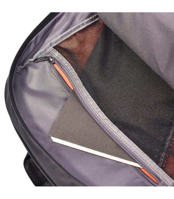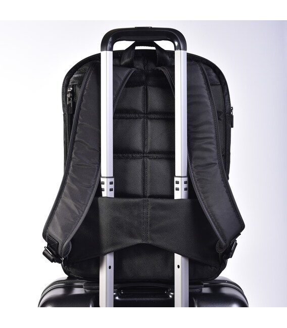 Місткий і функціональний рюкзак виконаний з 100% поліестеру. Оснащений глибоким основним відділенням з додатковими внутрішніми кишенями для кращої організації речей. На зовнішній частині розміщено кілька кишень, в одному з них є кишеня для телефону, кишеня для акумулятора, USB-кабель, і отвір для кабелю переходить в основне відділення рюкзака. Обладнаний ще одним відділенням для ноутбука 15,6 ". З заднього боку розміщена кишеня з RFID-захистом від шахрайства, ортопедична спинка і розумний рукав для розміщення рюкзака на телескопічну ручку валізи.