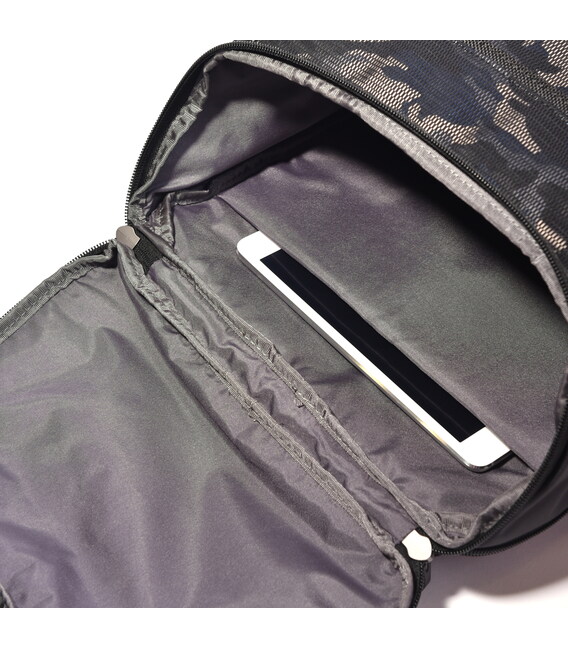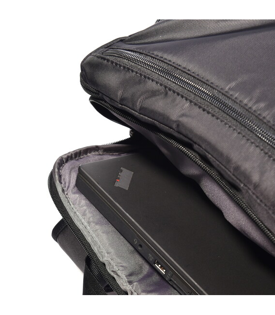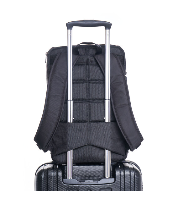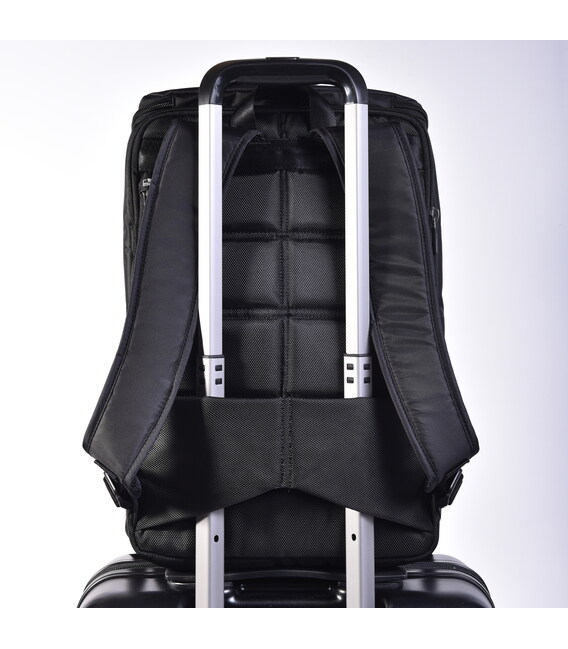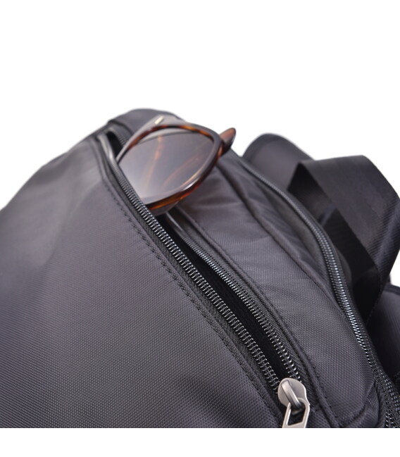 Великий і функціональний рюкзак виконаний з 100% поліестеру. Оснащений глибоким основним відділенням з додатковими внутрішніми кишенями для кращої організації речей. На зовнішній частині розміщено кілька кишень, в одному з них є кишеня для телефону, кишеня для акумулятора, USB-кабель, і отвір для кабелю, яке переходить в основне відділення рюкзака. З заднього боку розміщена кишеня з RFID-захистом від шахрайства, ортопедична спинка і розумний рукав для розміщення рюкзака на телескопічну ручку валізи.