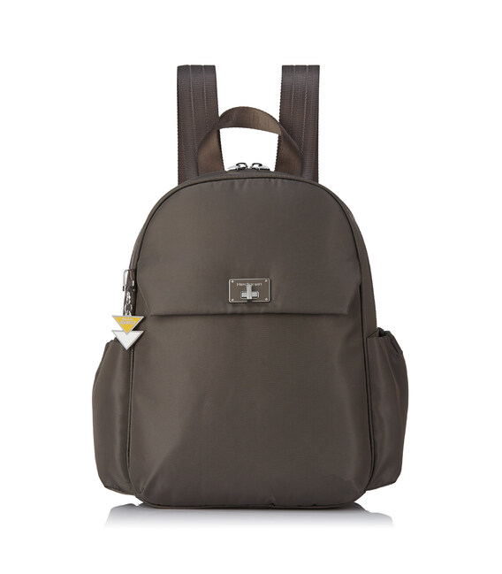Жіночий рюкзак, середнього розміру. Оснащений зовнішньою кишенею на клапані з карабіном для ключів, містким основним відділенням де розміщений відділ для телефону та додаткова кишеня на блискавці з RFID-захистом. Також містить бічні кишені для парасольки чи пляшки. Виконаний зі 100% переробленого поліестеру PET (поліефірна тканина з перероблених пластикових пляшок).