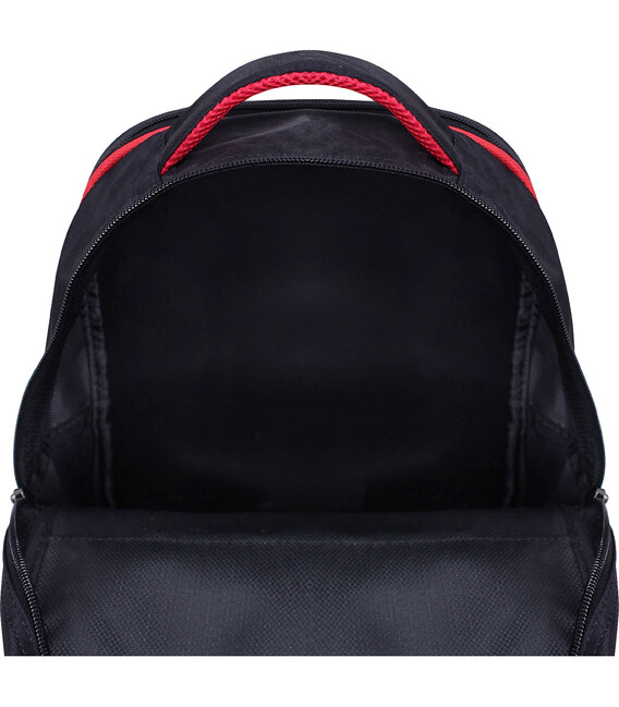 Ця модель має два відділення: найбільше підійде для підручників, зошитів, іграшок, а менше — для кольорового паперу й картону, альбому для малювання тощо. Спереду ззовні є кілька кишень для всього необхідного. Додатково є бічні відсіки з сітки для пляшки з водою чи термоса.