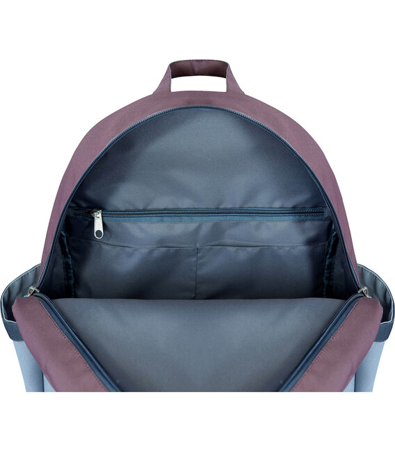 Він має одне велике відділення для книг, зошитів та іграшок. Також усередині є кишеня-органайзер із двома відсіками, які підійдуть для канцтоварів, та кишеня на блискавці для цінних речей чи ґаджета. Ззовні з обох боків є відсіки для пляшки з водою чи термочашки, а спереду — невелика секція для дрібниць.