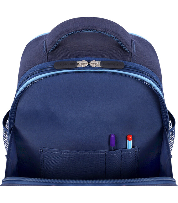 У цій моделі — два великих відсіки, тож розмір і місткість дають змогу брати з собою все необхідне для школи чи навіть короткої мандрівки. Основне відділення підходить для підручників, зошитів і канцелярського приладдя, а також туди поміститься спортивна форма та ланчбокс із перекусом. Другий відсік менший за обʼємом, проте також місткий — тут є додаткова кишеня-органайзер для канцтоварів.