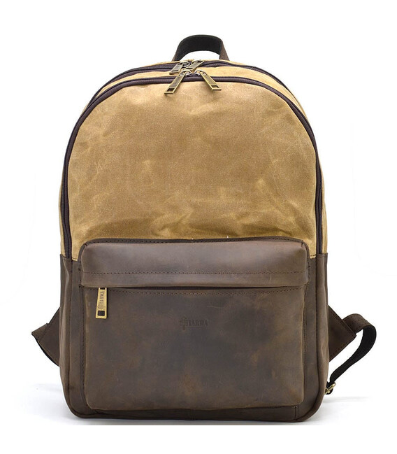 Рюкзак шкіра та воскований водостійкий канвас коричневий TARWA RCW-7273-3md