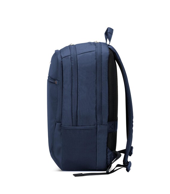 Рюкзак з колекції Easy Office виготовлений з легкого та комбінованого матеріалу - нейлон/поліестер щільністю 600x500d, що забезпечує вологостійкість. На фронтальній стороні вироба є дві кишені на застібці-блискавці з декоративною вставкою з гуми з контрастним кольором. Має два основних відділи в одном з яких є відсік для 17-дюймового ноутбука і 10-дюймового планшета, а також внутрішні відкриті кишені. Для комфортного перенесення оснащений мʼякими плечовими ременями та протиковзковою ручкою. Матеріал підкладки - 100% поліестер. З заднього боку виробу розміщена планка для кріплення на ручку валізи.