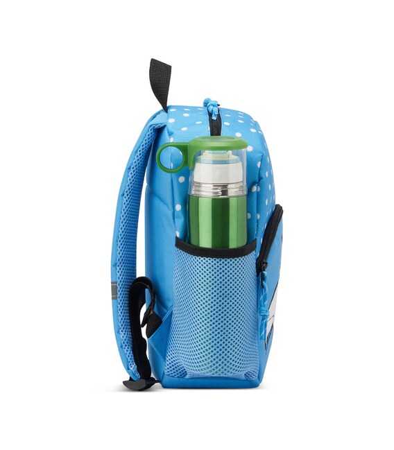 Місткий дитячий рюкзак, оснащений великим основним відділом та двома додатковими зовнішніми, на блискавці. Для зручності переміщення передбачена підйомна ручка на верхній панелі. Має м'яку спинку та плечові ремені, також, на плечових ременях присутні світловідбиваючі елементи. Додатково передбачені бокові кишені для пляшки або парасольки.