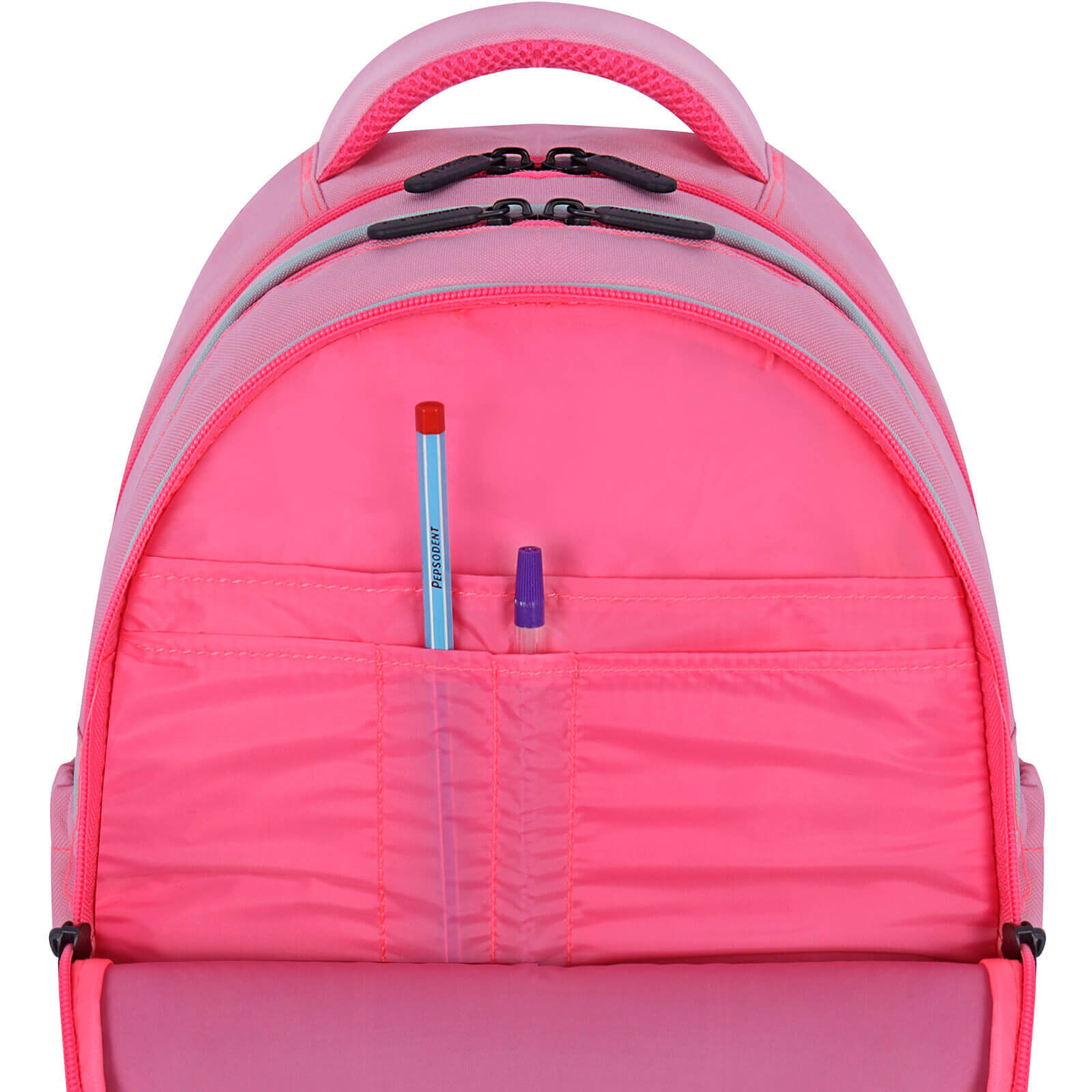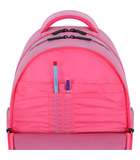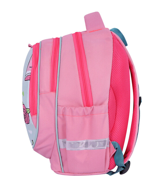 Рюкзак має три великі відсіки, куди помістяться необхідні речі. Найбільше відділення підходить для підручників і навіть спортивної форми, середнє — для зошитів і блокнота, а переднє — для дрібної канцелярії. Ззовні збоку є додаткові кишені для пляшок із водою. Ортопедична спинка знижує навантаження на хребет, забезпечуючи правильну поставу в дітей, а лямки рюкзака регулюються та мають вентиляційні вставки для запобігання потовиділення та більш комфортного використання.