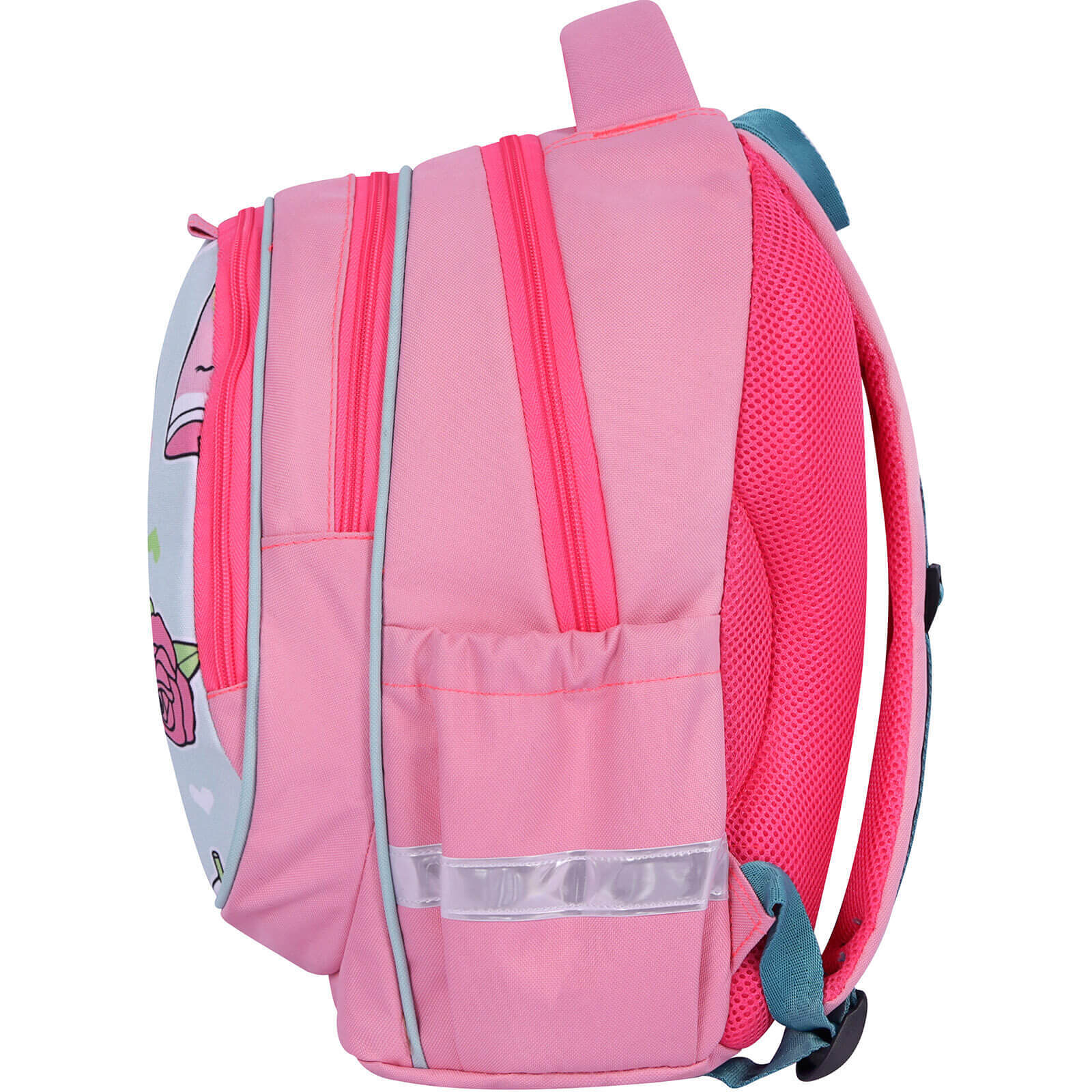 До рюкзака ми додали брелок, що доповнює його та виділяє серед інших. Крім того, подбали, щоб дитину було добре видно на дорозі в темний період доби — з обох боків є світловідбивні елементи.