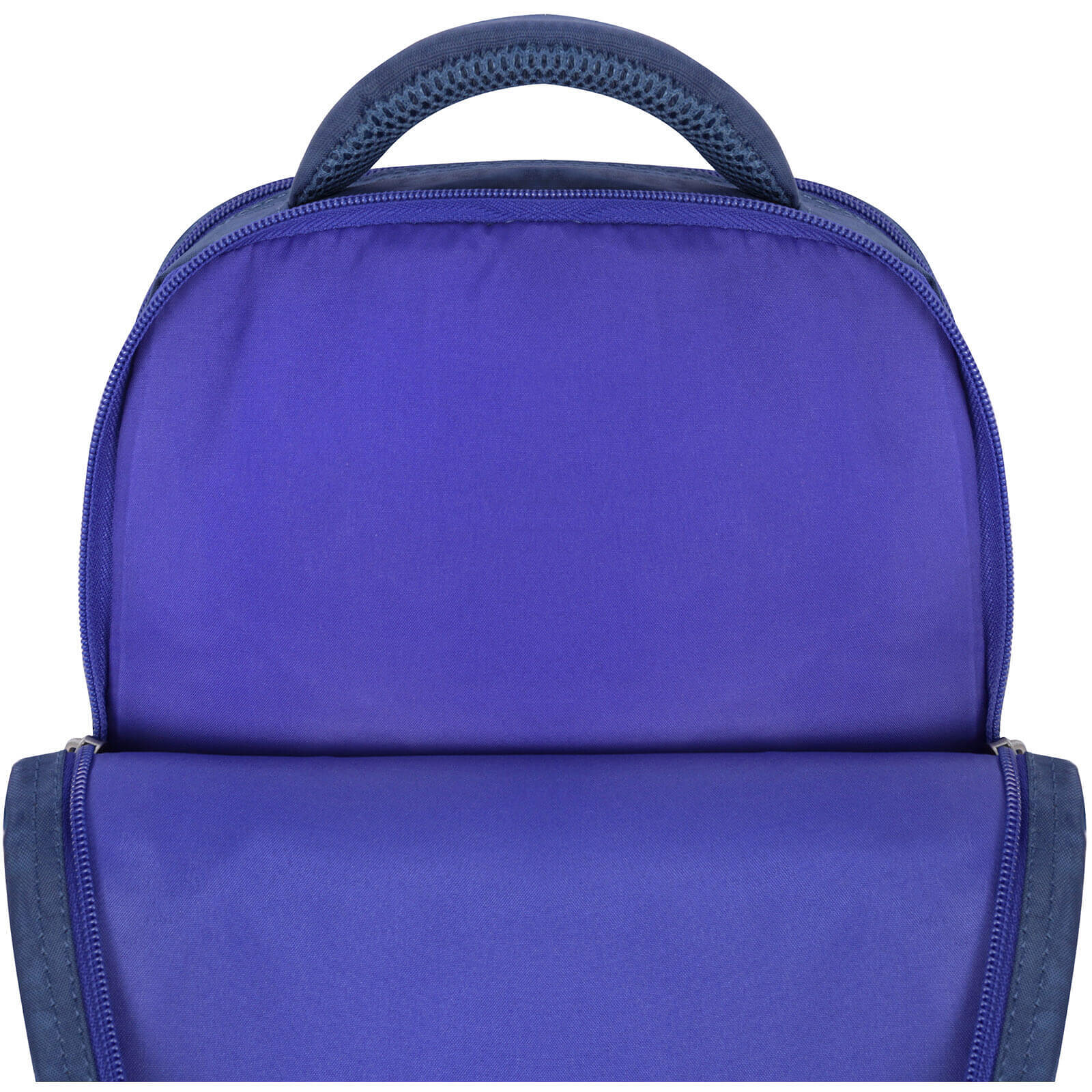 У рюкзаку — два просторі відділення на блискавці, де легко помістяться підручники, зошити або улюблені іграшки. Є також менше за розміром відділення з органайзером для канцтоварів — з ним можна обійтися без пенала. Спереду розташована зручна кишеня на блискавці для дрібниць — наприклад, телефону чи ключів. По боках — сітчасті кишені для пляшки з водою або термоса.