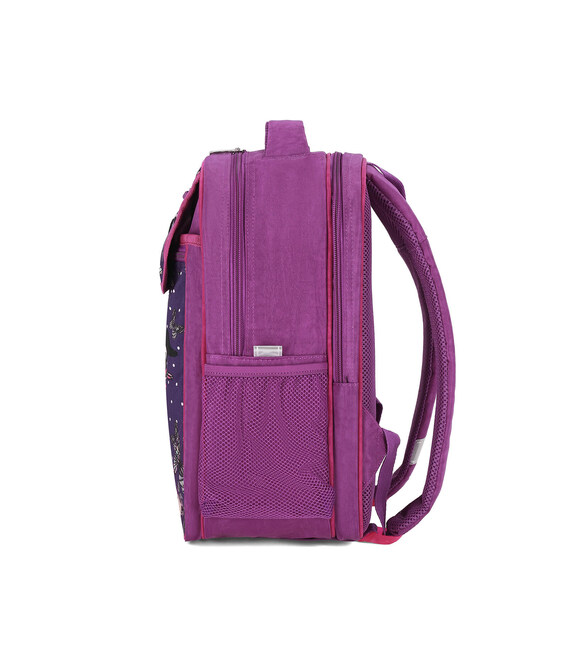 Ця модель має два відділення: найбільше підійде для підручників, зошитів, іграшок, а менше — для кольорового паперу й картону, альбому для малювання тощо. Спереду ззовні є кілька кишень для всього необхідного. Додатково є бічні відсіки з сітки для пляшки з водою чи термоса.