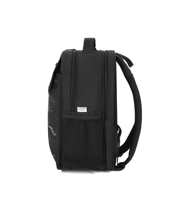 Ця модель має два відділення: найбільше підійде для підручників, зошитів, іграшок, а менше — для кольорового паперу й картону, альбому для малювання тощо. Спереду ззовні є кілька кишень для всього необхідного. Додатково є бічні відсіки з сітки для пляшки з водою чи термоса.
