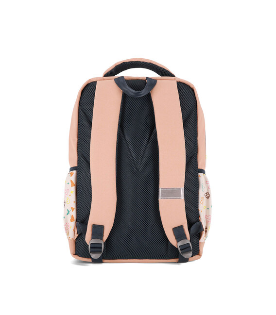 Він оснащений одним основним містким відділенням і додатковою кишенею з підкладкою. Дві передні кишені зручні для зберігання дрібниць і швидкого доступу до необхідного. З обох боків — кишені для пляшечки з водою або термоса.