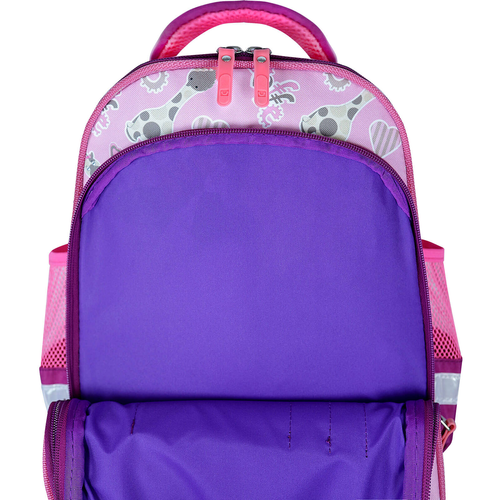 Основне й найбільше відділення підійде для підручників і спортивної форми. Друга кишеня призначена для зошитів, блокнотів чи альбому для малювання, а відсік-органайзер спереду — для дрібних канцтоварів і пеналу. Бічні сітчасті кишені вмістять пляшку з водою та парасольку.