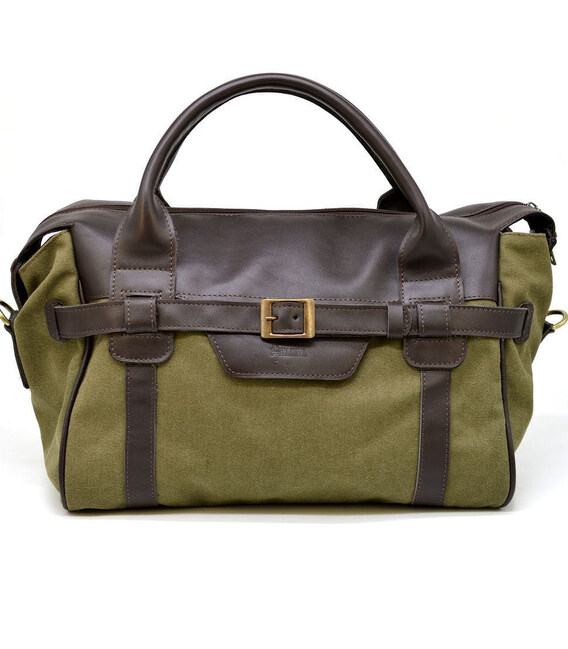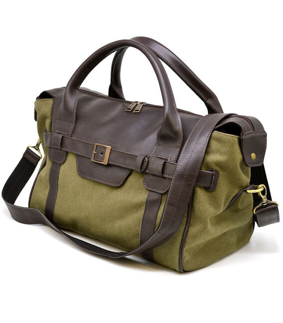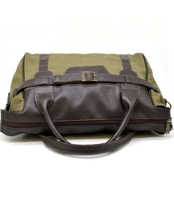 Комбінована сумка GH-7079-3md з натуральної шкіри та текстилю Canvas для нетривалих подорожей, відряджень. Підходить для ручної поклажі.