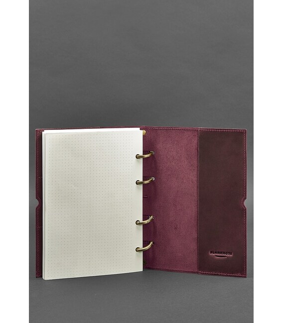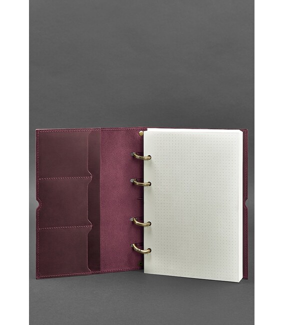 Шкіряний блокнот А5 на кільцях (софт-бук) 9.0 в м'якій бордовій обкладинці
