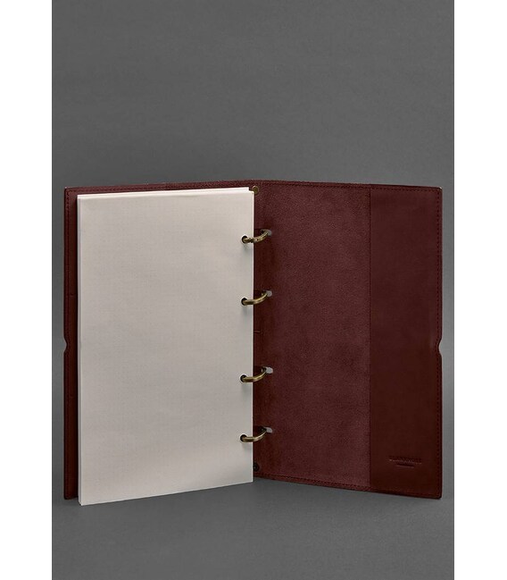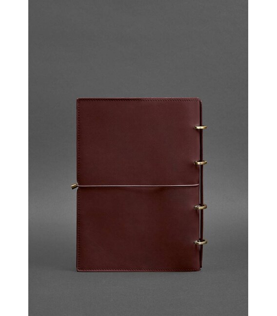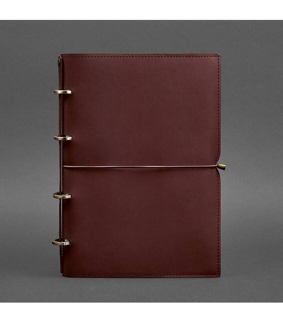 Шкіряний блокнот А4 на кільцях (Софт-бук) 9.0 в м'якій обкладинці бордовий Краст