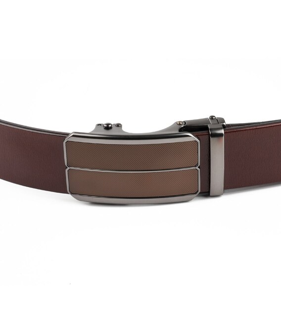 Ремінь чоловічий з коричневою вставкою і затемненим металом Vintage 20280 Коричневий