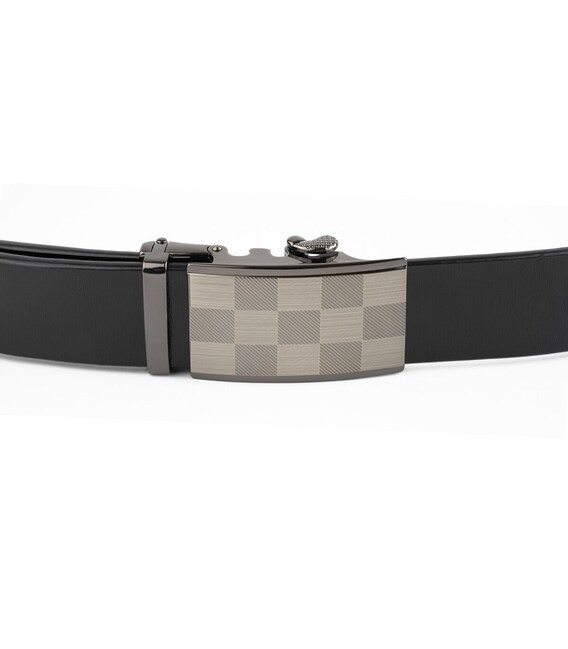 Ремінь чоловічий з автоматичною пряжкою шахматка Vintage 20266 Чорний